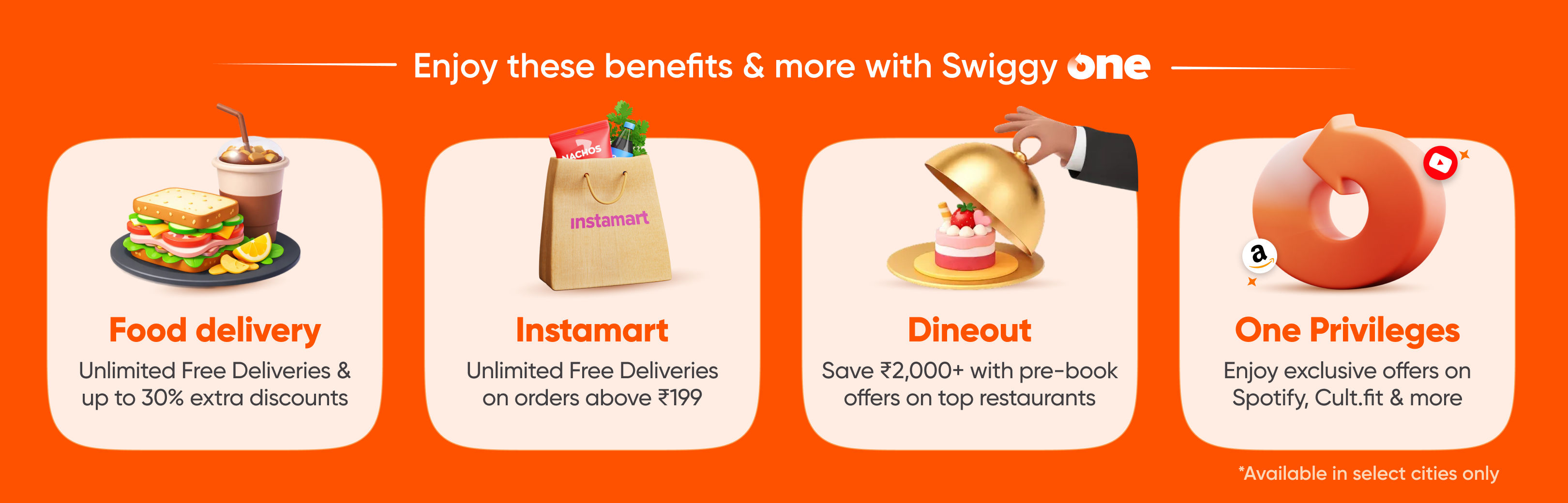 Hi Rajendar , Welcome to Swiggy One Your membership has been activated for 3 Months. Now, enjoy access to unlimited convenience and benefits all across Swiggy. Got a question or need help? Chat with us on the Swiggy app and we'll help you out. Thanks, Team Swiggy Your Membership Details